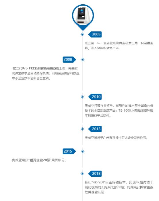 2005年,成立第一年,奧威亞成功自主研發(fā)出第一臺(tái)錄播主機(jī),進(jìn)入全新的藍(lán)海市場。