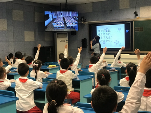 兩校經過前期的設備安裝和技術調試,順利達到了同步課堂教學要求。兩校教師又立足各校的學情,團隊備課,互相切磋,精心打磨教學過程。在大家的共同努力下,5月22日下午,兩校的遠程同步協同課堂首次開播了!