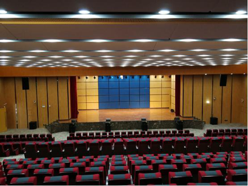 該項目報告廳,觀眾容納量超800余人,對聲場的環(huán)境設(shè)計十分重要,如廳內(nèi)聲壓分布均勻度、音頻質(zhì)量、系統(tǒng)穩(wěn)定性有著高要求。現(xiàn)代的多功能報告廳既用于語言類擴聲使用,更兼具舞臺演出音頻擴聲用途,在擴聲系統(tǒng)設(shè)計時,依據(jù)場地深度、寬度、高度對擴聲設(shè)備的選配、布局安裝作了科學(xué)合理的計算分析。