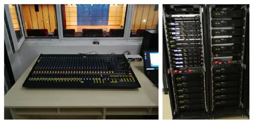 主擴聲調(diào)音臺采用的是32路調(diào)音臺既可以滿足簡單語言擴聲需求又可以滿足復(fù)雜的演出需求,跟隨不同場景靈活調(diào)控。對應(yīng)主輔功放的匹配,除提高音箱工作時的安全性和穩(wěn)定性外,能夠最大忠實還原聲音本色,表現(xiàn)更加生動、有力。