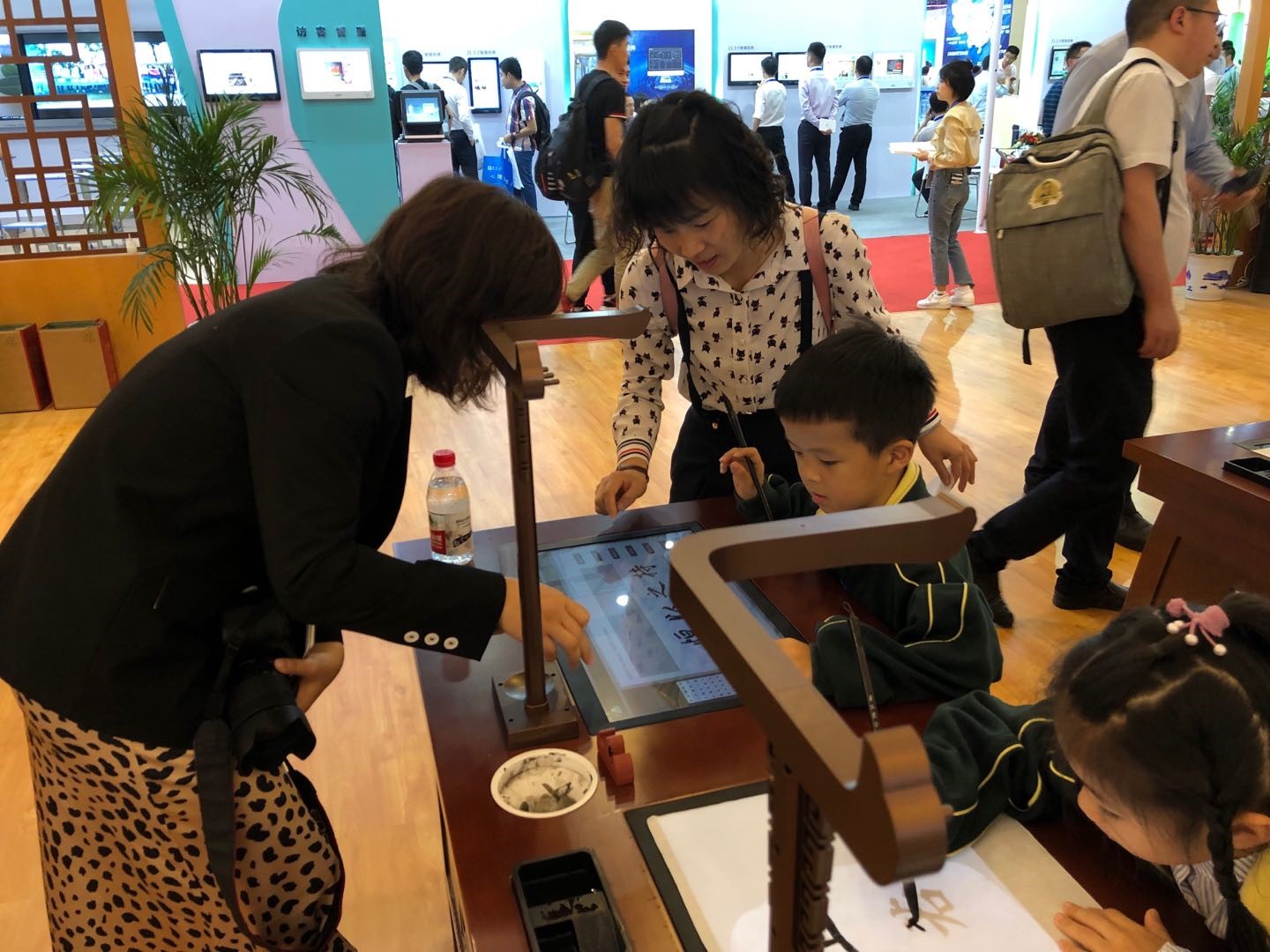 記者了解到,該公司此次展出的是華文眾合第五代智慧書法教室,其產品的研發(fā)以提升書法教學水平為出發(fā)點。在此次展會上推出了新的軟硬件“智能課程平臺”和“興趣體驗式學習軟件” ,前者包括從內置資源示范到學生動手體驗再到知識擴展和原帖欣賞等模塊,后者包括識字體、拼字體等體驗學習方式,二者結合可讓學生更加了解各類字體的特點,更能欣賞不同字體的美感,進一步提升書法教學效率的同時更多地提升學生學習書法的興趣。
