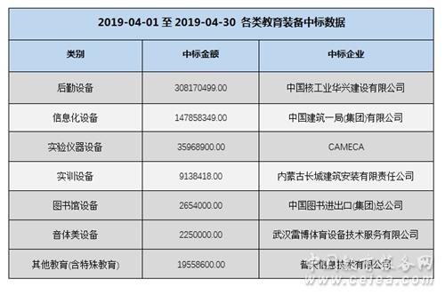附:2019年4月已有教育裝備類別數(shù)據(jù)中累積最高中標金額及其所屬企業(yè)。