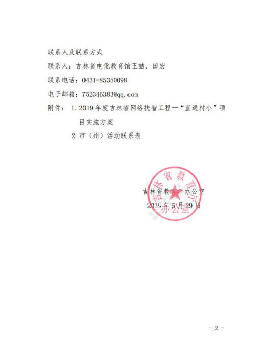 關(guān)于印發(fā)《2019年度吉林省網(wǎng)絡(luò)扶智工程—“直通村小”項目實施方案》的通知