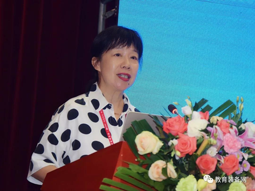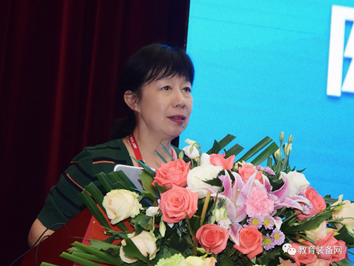 ▲中國教育技術協會首席專家、中國教育裝備行業協會研究院副院長施建國在教育裝備發展與應用論壇上作主旨演講
