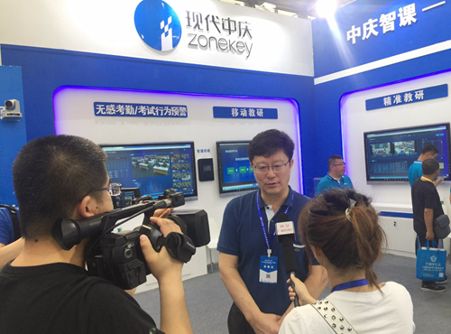 人工智能+教育的深度融合應用,使中慶成為展會的焦點。當地媒體西安電視臺記者對中慶總經理進行采訪,闡述了中慶用AI服務教育的理念。