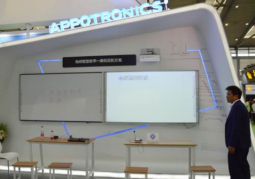 本次博覽會,光峰攜光峰教學一體機投影方案、光峰高清高亮投影方案等全系列激光教育產品解決方案亮相。光峰教學一體機投影方案:在實際課堂中,老師既需要播放教學的內容,又難以改變傳統手寫板書習慣,光峰教學一體機方案,一邊投影播放出教學內容,另一邊為無塵黑板,保護師生健康,極大的增強了教學展示效果,豐富了教學展示手段,廣泛適用于K12教學課堂中。