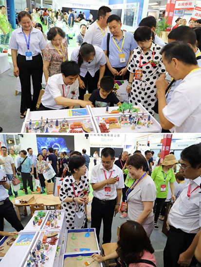 《國家中長期教育改革和發展規劃綱要(2010-2020年)》提到:學前教育對幼兒身心健康、習慣養成、智力發展具有重要意義。遵循幼兒身心發展規律,堅持科學保教方法,保障幼兒快樂健康成長。山東建榮一直致力于幼兒園玩教具的開發,本次展出的情景繪本閱讀套裝,通過該套裝,小朋友可以將了解過的繪本故事通過諸多模型的排演進行繪本內容情景再現,并且可以將排演出來的情景再反饋出來,不僅提高小朋友的想象力、動手能力,還可以提高小朋友的語言能力,可謂是一舉多得。另外,各種造型的實木桌椅、實木積木,綠色環保,也得到了小朋友、家長以及很多幼兒園老師的認可。