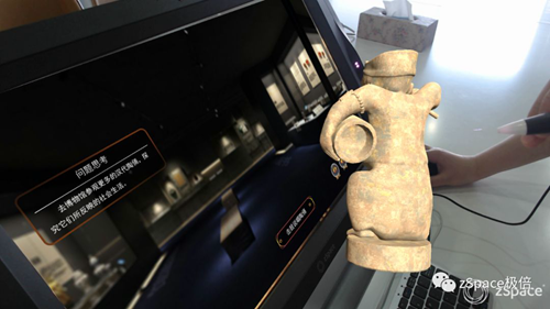 有別于以往在“紙面上”的學習,極倍zSpace與中教啟星一起,將博物館中的文物搬到課堂中來,為學生多方位地進行展示。仰仗于極倍zSpace的虛擬現實及增強現實技術算法,文物栩栩如生地呈現在學生面前,學生可以通過手中的六維度觸控筆進行多角度的旋轉和放大,仔細觀察每一個細節,進行探究性學習,激發更多思考。