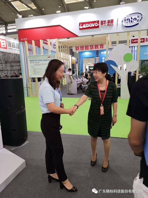 感謝中共陜西省委教育工作委員會委員、陜西省教育廳副廳長趙昶葆,深圳市教育裝備行業(yè)協(xié)會會長、廣東心里程教育集團總裁彭錦環(huán)蒞臨精標展位指導參觀。致謝現(xiàn)場來賓對精標智慧教室的一眾贊許。