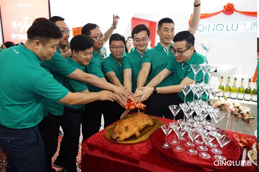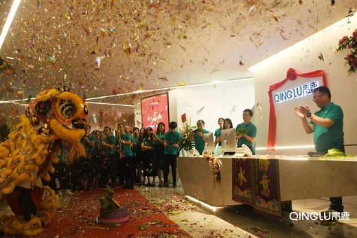 副總裁藍(lán)總宣布揭牌儀式正式開始,公司高層共同為新辦公樓揭牌,隨著紅幕布緩緩落下,青鹿充滿朝氣與活力的logo赫然展示在大家面前。