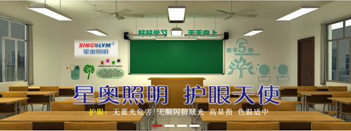 星奧照明沿用率先在國內將高功率LED照明燈具應用到轉播級標準足球場的生產技術,針對教室照明環境不佳誘發近視,星奧LED護眼燈具全面改善照度、眩光、光頻閃、顯色指數、色溫、藍光等六大核心參數,研發出新時代特色的照明直流供電系統、智慧照明控制系統和LED燈具系統,全面呵護祖國下一代健康用眼。