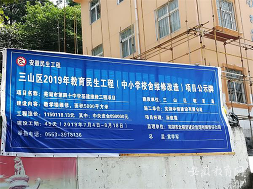 暑假期間,三山區教育局針對今年實施的教育民生工程--中小學校舍維修改造項目,加大宣傳力度,讓更多老百姓知曉教育民生工程。