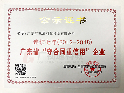廣視通連續七年榮獲“廣東省守合同重信用企業”稱號!這是政府對廣視通一直以來堅持誠信守信,高度重視合同管理和社會誠信體系建設的肯定,也是廣視通作 為誠信標桿單位的證明。
