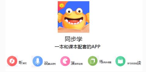 1、體現素質教育要求,產品設計要科學——同步學頁面干凈明了,模塊設置方面簡單實用,未提供多余的課本外游戲娛樂,版塊概括包含聽、說、讀、演、練五大方面內容。