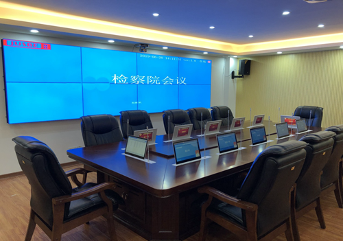 為實現會議信息化,提高會議效率和節約資源,檢察院會議室需要打造一套智能高效無紙化會議室用于各類工作會議、主題報告、專題黨課、視頻會議等的開展。