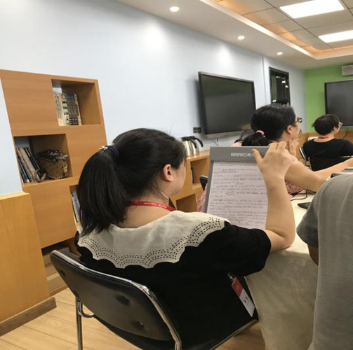 當天下午希沃交互智能錄播產品線的相關代表從產品的硬件與軟件兩方面開展了相關內容的培訓,培訓課程進行過程中,老師們認真學習相關內容,筆記寫滿了整整幾頁紙。通過硬件性能及操作的培訓,讓老師們相信希沃交互智能錄播能更好地支持常態化的使用,而非精品錄播一般,只是用于示范課等內容展示,同時配合希沃交互智能平板使用,讓老師的授課更加高效便捷;軟件培訓方面,結合希沃EN5,班級優化大師等軟件的運用,為老師們提供課程互動新模式新方案。