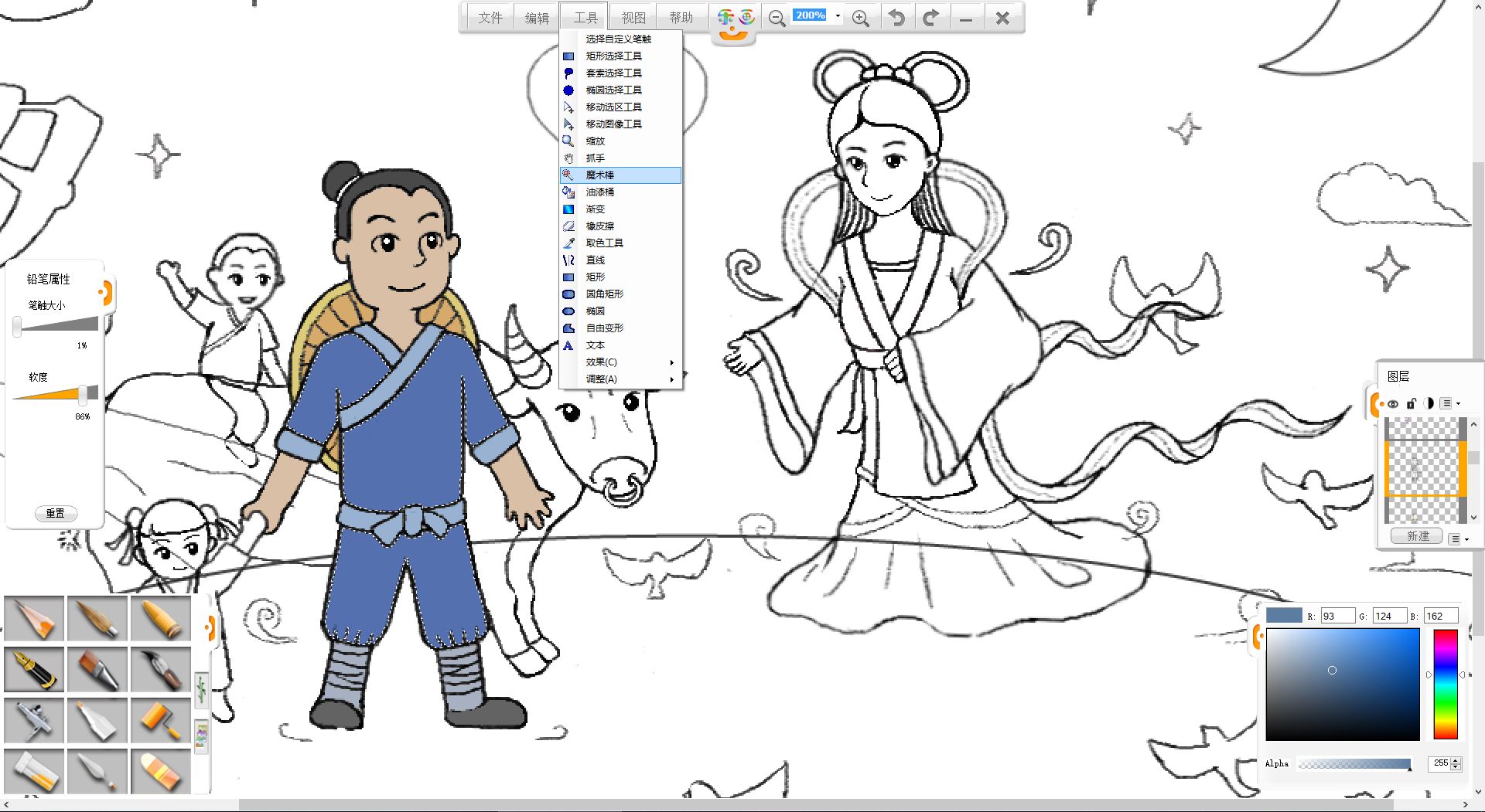 6.使用相同方法在畫面右側繪制一個織女的形象。