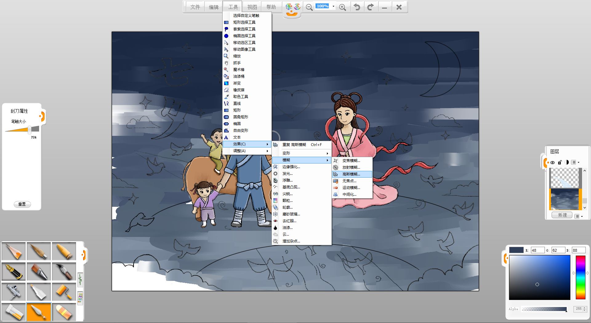 16.在工具菜單下,選擇“效果”-“模糊”-“高斯模糊”,將背景色模糊處理。