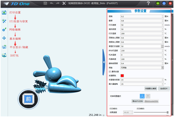 3D One軟件模擬真實成品預覽效果,方便隨時調整參數設置。同時老師還可用動畫形式快速演示打印過程,讓同學們更加直觀地了解模型的制成,感受3D建模化虛無為真實的魅力,激起學生學習青少年三維創意設計軟件的興趣。