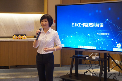 13日上午,希沃教育研究院的胡婷玉院長首先做了《名師工作室政策解讀》的專題報告。其從國家政策的角度去闡述組建名師工作室必要性及其發(fā)展方向,并提出了“示范、引領(lǐng)、指導(dǎo)、輻射”四大職能,提到名師工作室是區(qū)域教師信息化成長的有力推手。