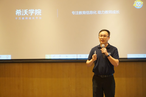 交流中,大家也提及當下名師工作室存在的問題:一是團隊目標不清晰,管理過于松散;二是缺乏數(shù)據(jù)支持,做了事情沒有量化體現(xiàn);三是影響力有限。基于以上問題,希沃教育研究院的何家鑫老師帶來《專注教育信息化,助力教師成長》的專題分享。