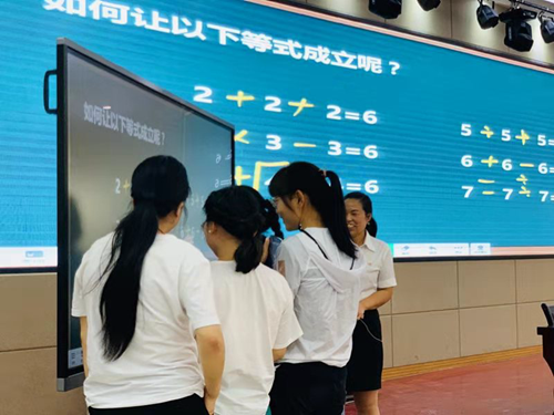 緊接著希沃杏壇講師樊巧慧從一線教師的角度,結合自己的信息化應用能力提升的經驗,為在場老師講解了希沃軟件在中小學各學科課堂中的使用。參訓老師們領略了希沃白板在備課、授課等情景下的應用:從形狀、文字講到視、音頻導入;從視頻打點功能講到背景制作、講到蒙層功能。每到互動環節,老師爭相上臺操作互動,都想體驗下希沃白板預設的各項課堂工具,現場氛圍輕松而熱烈,參訓老師就像學生一樣融入了信息化的高校生動的課堂里。
