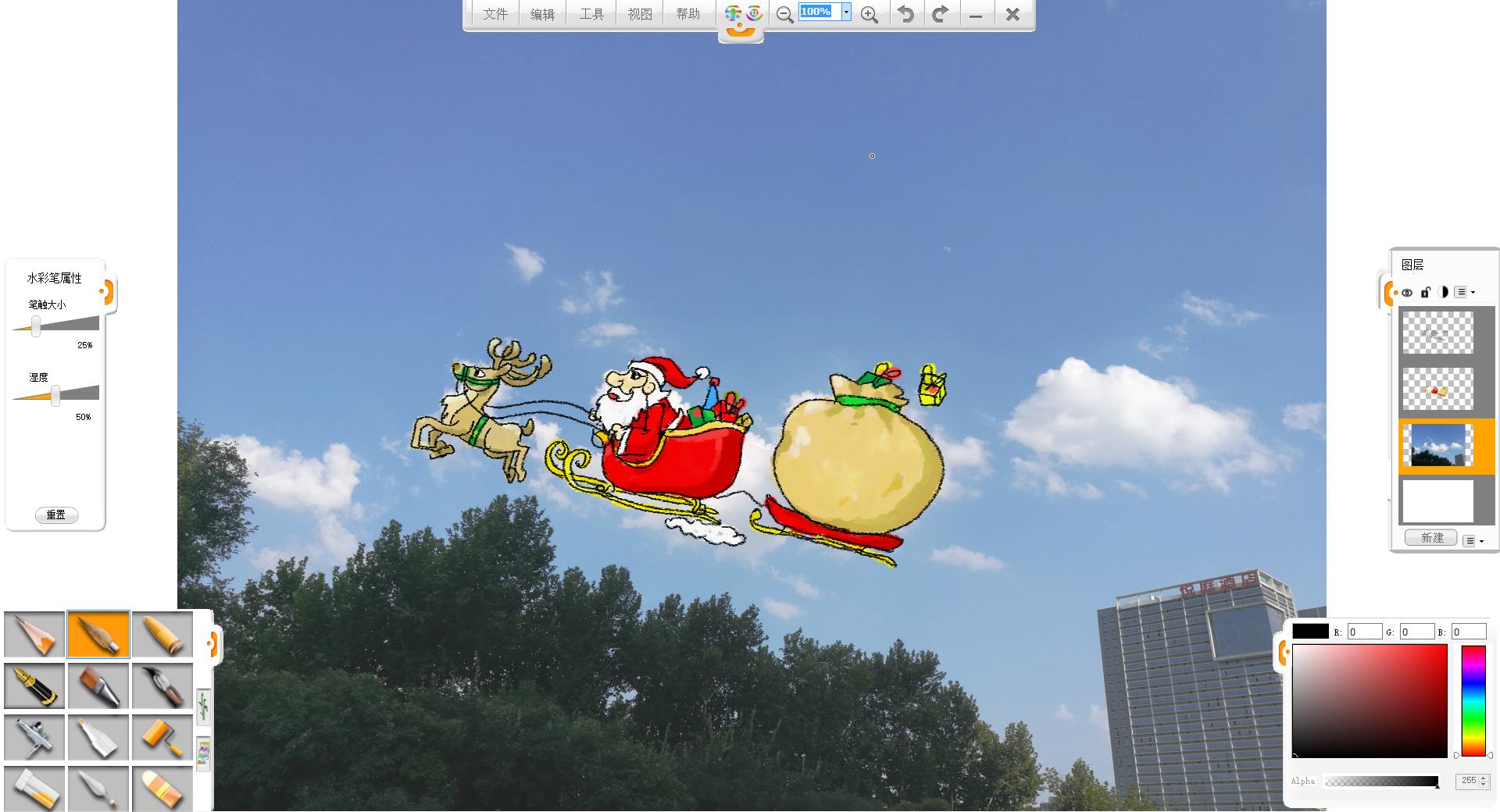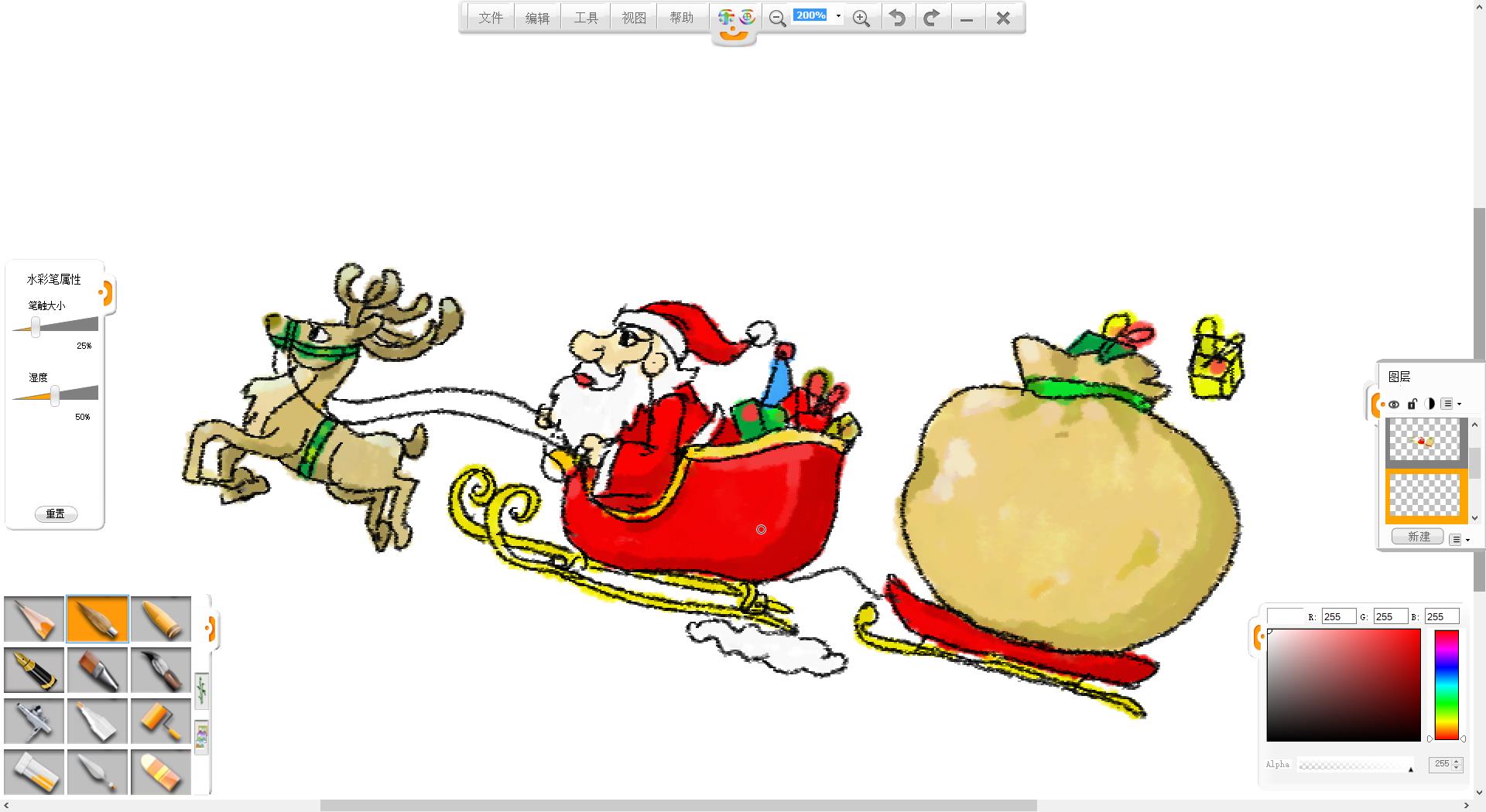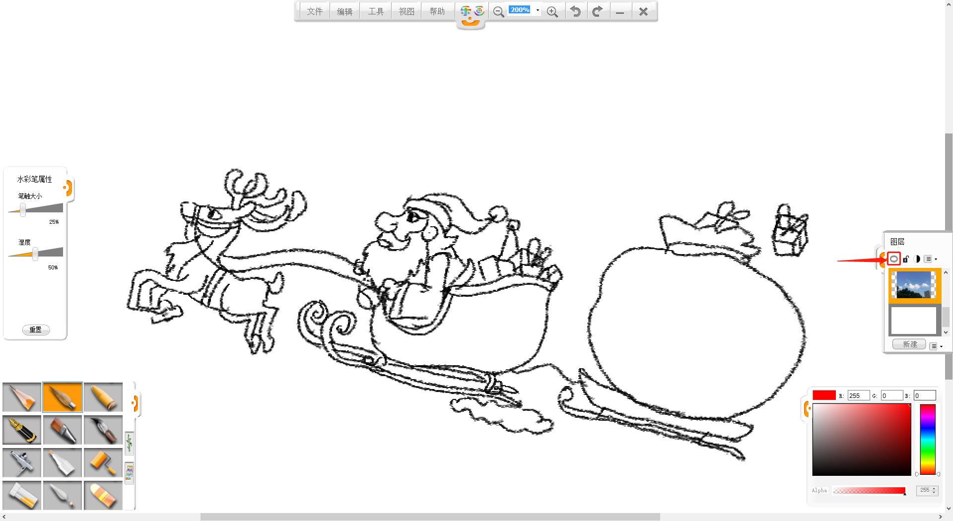 7.新建一個圖層,使用水彩筆筆觸進(jìn)行上色。
