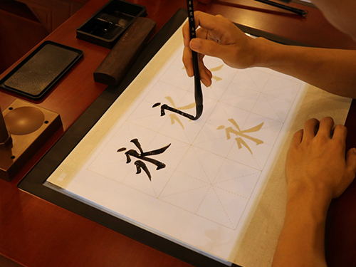 本著弘揚傳統(tǒng)文化的初心,華文眾合提出“傳統(tǒng)與科技融合,而不摒棄傳統(tǒng)”的理念,堅持讓學生使用真實的筆墨紙學習,避免電子模擬、水寫等書寫體驗對學生造成不良影響,并歷時4年研發(fā)交互式數(shù)字臨摹臺,將宣紙鋪在臨摹臺上就可以高清臨摹。針對中小學生的成長特點,交互式數(shù)字臨摹臺還具備護眼功能,同時抗壓、耐磨、防水、防震。