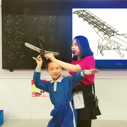 站在講臺上的是來自寶島臺灣的科學老師,正在用新的教學方法,向同學們講解這些問題。通過圖片、視頻的展示講解各類飛機的構造及功能,生動形象,給同學們帶來深刻的視覺印象。