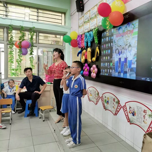 多才多藝的同學們準備了節目的音樂、視頻、節日背景圖片等素材,準備在班級的晚會中大展身手。詩朗誦、小提琴、拉丁舞…一個個儼然變成了萬眾矚目的明星。UCN納米智能黑板當然也不負期待,承載起了晚會的展示平臺的作用。