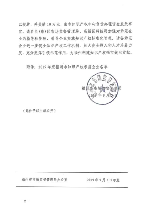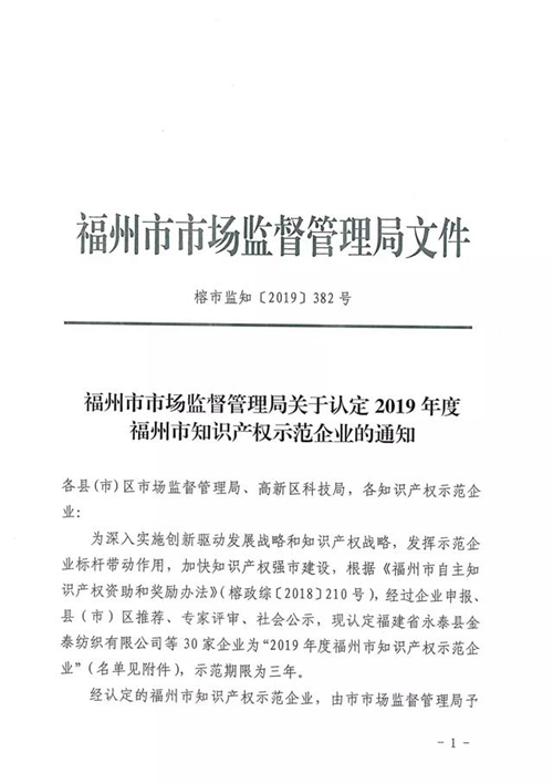 福建捷宇電腦科技有限公司被認定為福州市知識產權示范企業