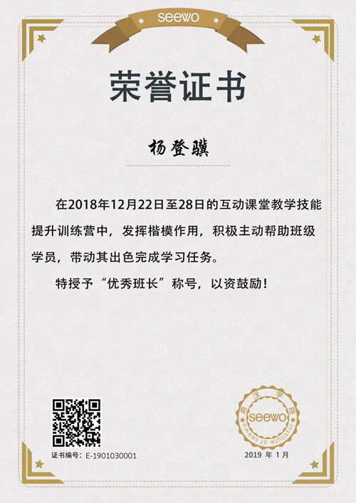 希沃杏壇計劃是希沃教育研究院發起的全國教師信息技術與學科融合能力提升項目,認證為希沃杏壇三星導師,意味著他們成為本區域信息化教學的骨干教師,具備組織培訓的能力。