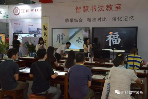 這一次盛大的教育裝備展覽會中,新科教學設備也攜帶了自身的教育裝備產品進駐展會,包括智慧書法教室、智慧頂裝系統實驗室及新型材料的實驗室桌椅等產品。在現場,有不少教育行業專家和商家上前咨詢,為新科展位累積了不少人氣。