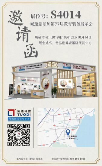在這金秋送爽、丹桂飄香之時,拓迪科技誠邀您同赴于10月12-14日舉行的“第77屆中國教育裝備展”,蒞臨青島世博城國際展覽中心拓迪展區(展位號:S4014),體驗拓迪科技最新技術成果、共享教育裝備產業發展碩果、共話書香校園建設發展。