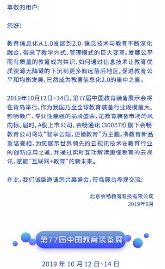 智享云端,更懂教育 | 會暢教育與您相約第77屆中國教育裝備展