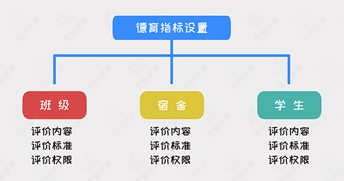 第一,支持德育管理指標設置。不同的學校在辦學上擁有自身獨特的理念,對德育工作的評價指標也不盡相同,系統滿足學校在德育工作中評價內容、評價標準、評價權限等的靈活設置,使不同教師及部門間協同開展德育工作,有效保障評價機制的順利運行。