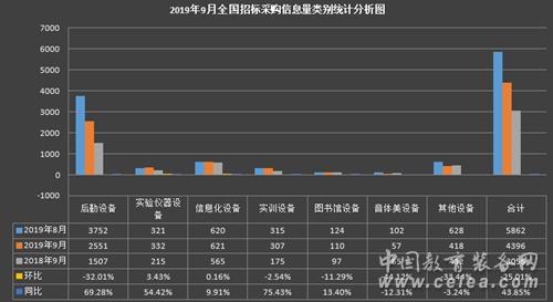 9月份國內教育裝備市場招標采購信息量呈下降趨勢