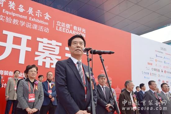 中國關心下一代工作委員會副主任、中紀委駐教育部紀檢組原組長田淑蘭,教育部關心下一代工作委員會常務副主任、中國教育裝備行業協會會長王富,中共山東省委教育工委常務副書記、省教育廳廳長、黨組書記鄧云鋒,青島市人民政府副市長朱培吉,聯合國教科文組織納塔莉亞·阿米莉婭女士,英國教育供應商協會(BESA)副主席亞歷山大·謝伊(Alexander Shea),以及30多個省市相關工作部門負責領導,參展企業代表和媒體代表出席開幕式。開幕式由中國教育裝備行業協會副會長兼秘書長夏國明主持。