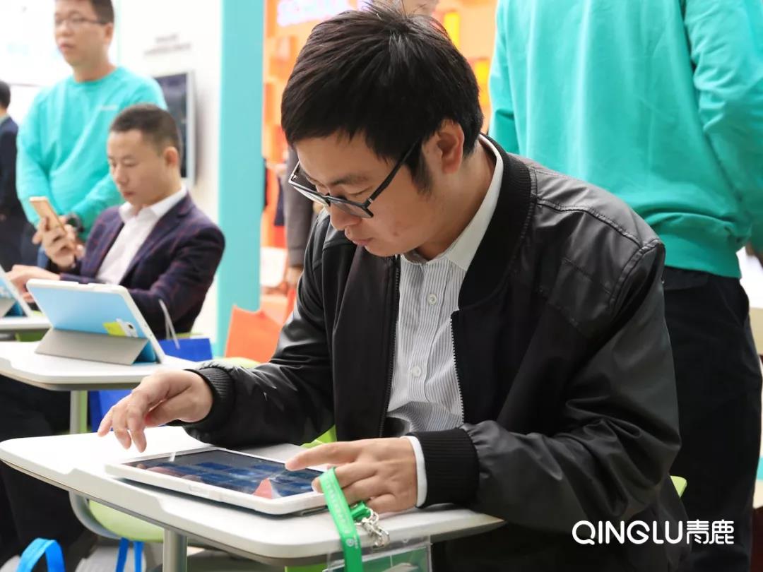 來賓正在體驗(yàn)青鹿智慧課堂