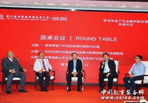 論壇最后開展了圓桌會議,參會嘉賓北京市教育技術設備中心副主任柴旭津,天津市普通教育技術裝備管理中心副主任王戈、視源股份未來教育集團總裁黃明寒以及四川長虹教育科技有限公司總經理黃煥就教育裝備產業當前發展的瓶頸與機遇,如何發揮供應鏈金融優勢解決教育裝備企業發展瓶頸,教育裝備上市企業的現狀與未來產業發展趨勢等問題進行了深入的交流和探討。