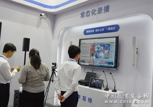 本屆展會,聲菲特推出了雙師課堂互動體驗區,主要展示智慧教學擴聲和精品錄播系統,采用陣列麥遠程拾音、音頻處理器特殊反饋算法處理后、通過音柱控制覆蓋把聲音傳送出來,再搭配攝像頭和錄播主機,可無縫對接遠程音視頻互動教學,系統操作簡單,真正地解放老師的手腳,讓老師只專注于教學內容,使課堂互動更活躍,效果更好。