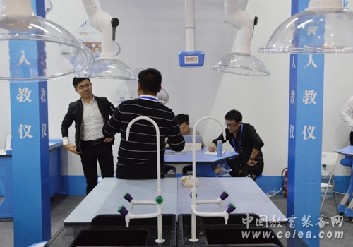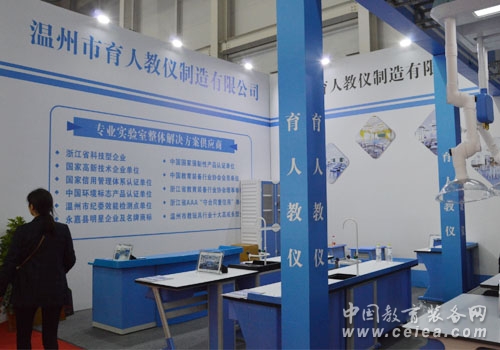 溫州市育人教儀制造有限公司攜物理教師電源、物理學生臺、老師桌、實驗室水嘴、實驗室儀器柜、標本柜等產品參加展會。
