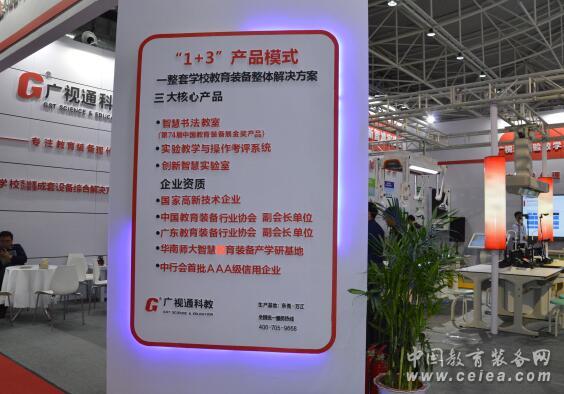 此次展會廣視通傾力打造了“1+3”的產(chǎn)品模式,帶來了智慧書法教室、實驗教學與操作考評系統(tǒng)、創(chuàng)新智慧實驗室及學校教育裝備整體解決方案。
