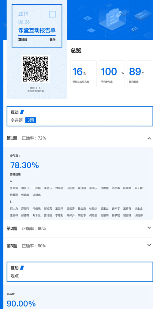 課后,老師可以一鍵掃碼,帶走課堂學情數(shù)據,作為學生平時成績納入期末考核。