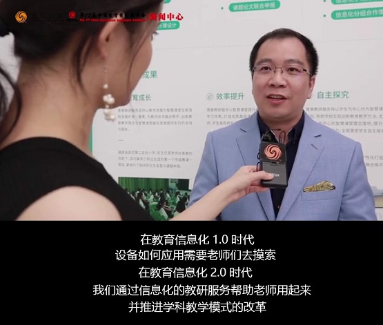媒體中國教育裝備網、鳳凰教育、大眾網、今日頭條等媒體積極關注本次展會。借此之際,中國教育裝備網及鳳凰教育的記者對廣州青鹿教育科技有限公司進行采訪,(以下簡稱“廣州青鹿”)副總裁胡滌新和青鹿智慧教育研究院廖力為媒體介紹青鹿的參展情況。