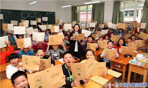 趁著這股“東風”,環(huán)保作業(yè)本一舉得到永川、秀山、江津、沙坪壩等10個區(qū)縣相關部門的認可,近80萬中小學生用上環(huán)保作業(yè)本。