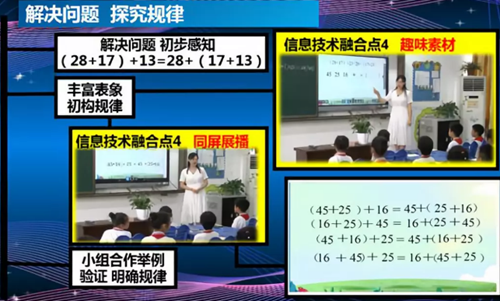 特等獎(jiǎng)獲得者王相怡老師,向在場(chǎng)評(píng)委們展示了《加法運(yùn)算律》的說課內(nèi)容,本節(jié)課的亮點(diǎn)在于,基于天立泰智慧課堂3.0發(fā)布課前預(yù)習(xí),進(jìn)而了解教材與學(xué)情分析,并且利用課堂中投票、白板、同屏展播、趣味素材、選詞填空、趣味分類等功能。學(xué)生在經(jīng)歷探究和發(fā)現(xiàn)加法運(yùn)算律的過程中,去培養(yǎng)觀察、比較、抽象、概括和歸納等能力,發(fā)展初步的符號(hào)意識(shí)。在參與數(shù)學(xué)活動(dòng)的過程中,獲得學(xué)習(xí)的成功體驗(yàn),進(jìn)一步增強(qiáng)對(duì)數(shù)學(xué)學(xué)習(xí)的興趣和信心。
