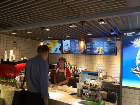 現在,數字標牌產品已逐漸成為商業體中消費者獲得有效信息最經濟、最快捷的方式。在南京面包新語店,飛利浦數字餐牌不僅降低了店面運營成本,同時還能提升了店面環境以及客戶消費體驗,與顧客真正地建立連接,更好地塑造了品牌形象。