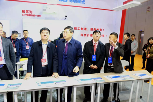 展會現場,博瑞星云智慧課堂建設方案得到了教育部關心下一代工作委員會常務副主任、中國教育裝備行業協會會長王富,省委教育工委書記、省教育廳黨組書記、廳長李江,省委教育工委委員、省教育廳副廳長、黨組成員崔昌宏,四川教育裝備行業協會會長張林祥、四川省教育廳技術物資管理指導中心主任劉漢濤以及省教育廳相關處室負責人及各地(市)州教育局上百名領導、專家和校長蒞臨博瑞星云展位考察指導。