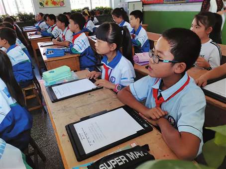 在智寫筆互動課堂上,孩子們拿起課桌上的平板電腦填寫題目答案,老師則能及時了解學生的答題情況;在線互動課堂上,一位音樂老師在一間空蕩蕩的教室里彈著鋼琴唱著歌,通過攝像頭和遠程連接,歌聲飄到了一所鄉村小學的教室里;在智慧課堂上,任課老師將性安全教育的內容,通過動畫的形式展示給學生,安坐家中的家長們則可以通過手機APP,實時查看上課畫面,聽老師的實時教學內容……